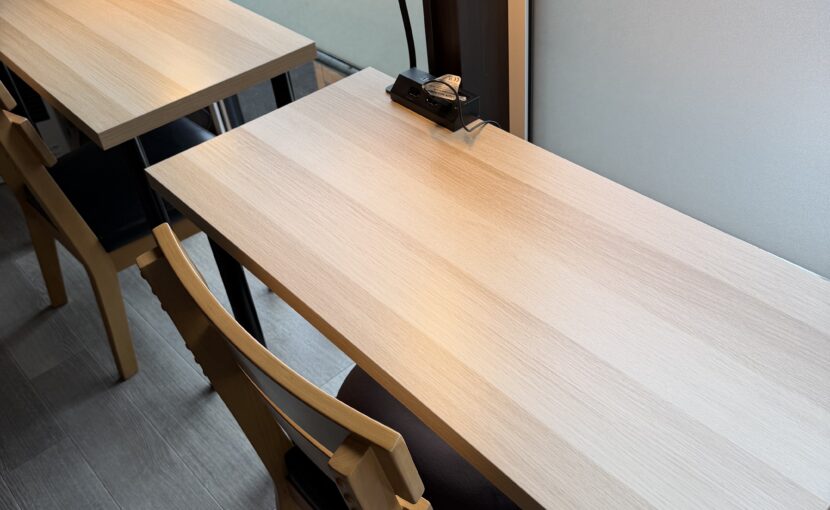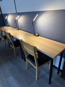 横関下宿の食堂に、食事や自習に使えるカウンタースペースを5席、設置しました。